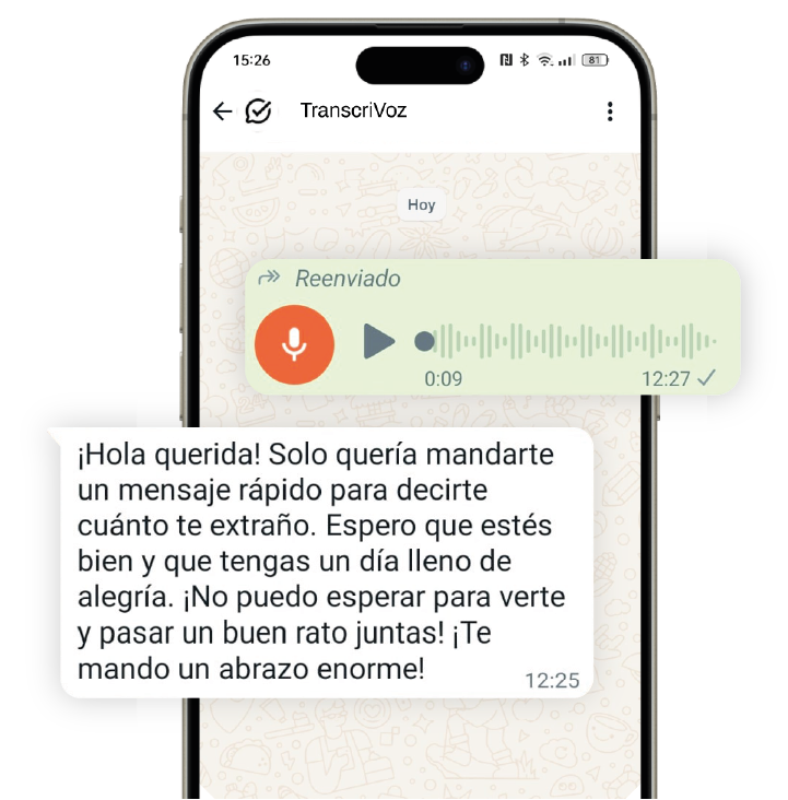 Añade el número de nuestro bot a WhatsApp y transcribe tus audios con solo un click.